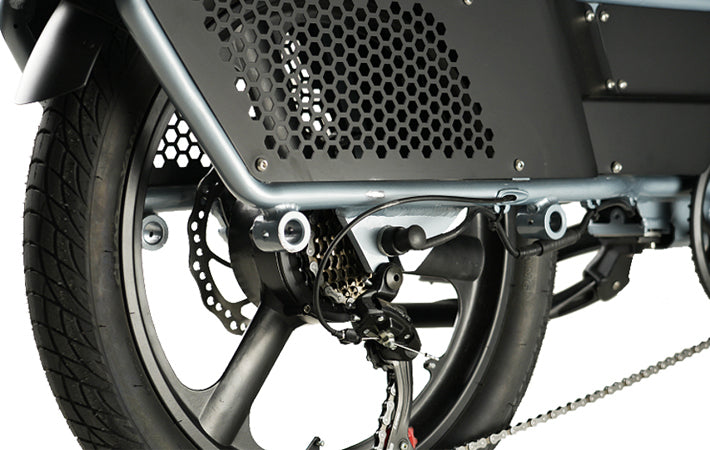 Safety is the priority when riding your eBikes with cargo or family. The protective panels serve a dual purpose: shielding the rear motor from dirt and splashes, and preventing rear-seat passengers from inadvertently coming into contact with the rear wheel and spokes.